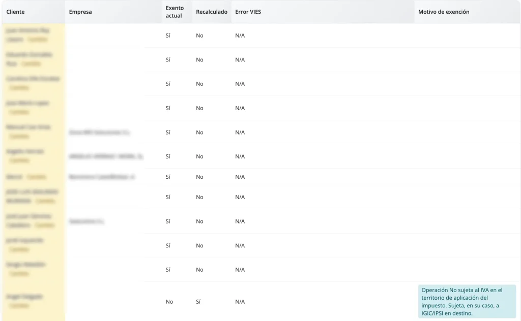 - Operadores intracomunitarios registrados en VIES (NIF empieza por ES)